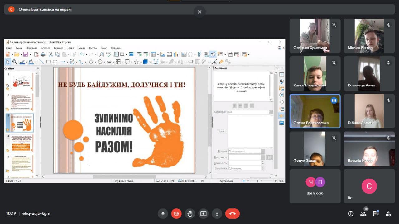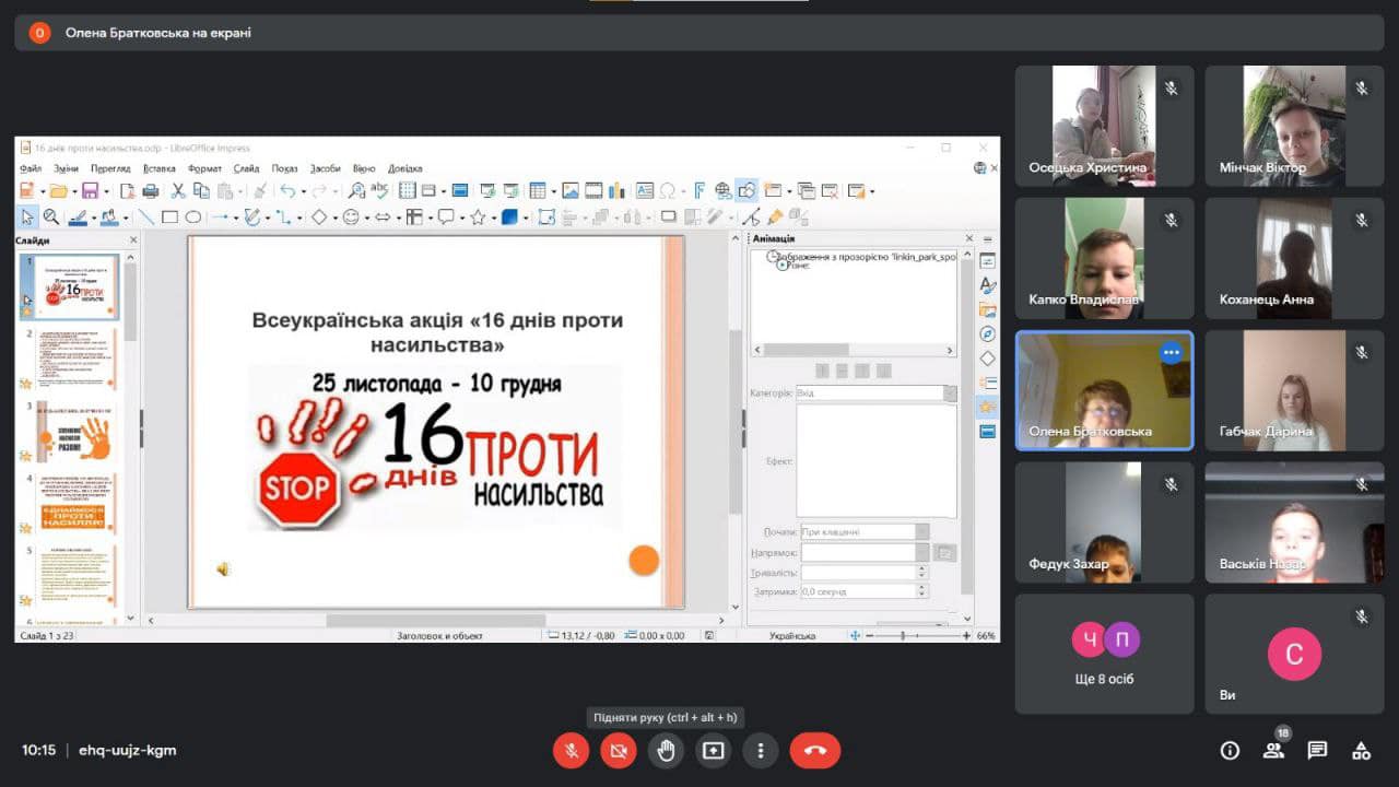Щороку з 25 листопада до 10 грудня проходить Всеукраїнська акція «16 днів проти насильства».